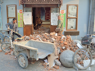 This is a miscellaneous shot from the walk back to the subway station. These guys are remodeling this shop.